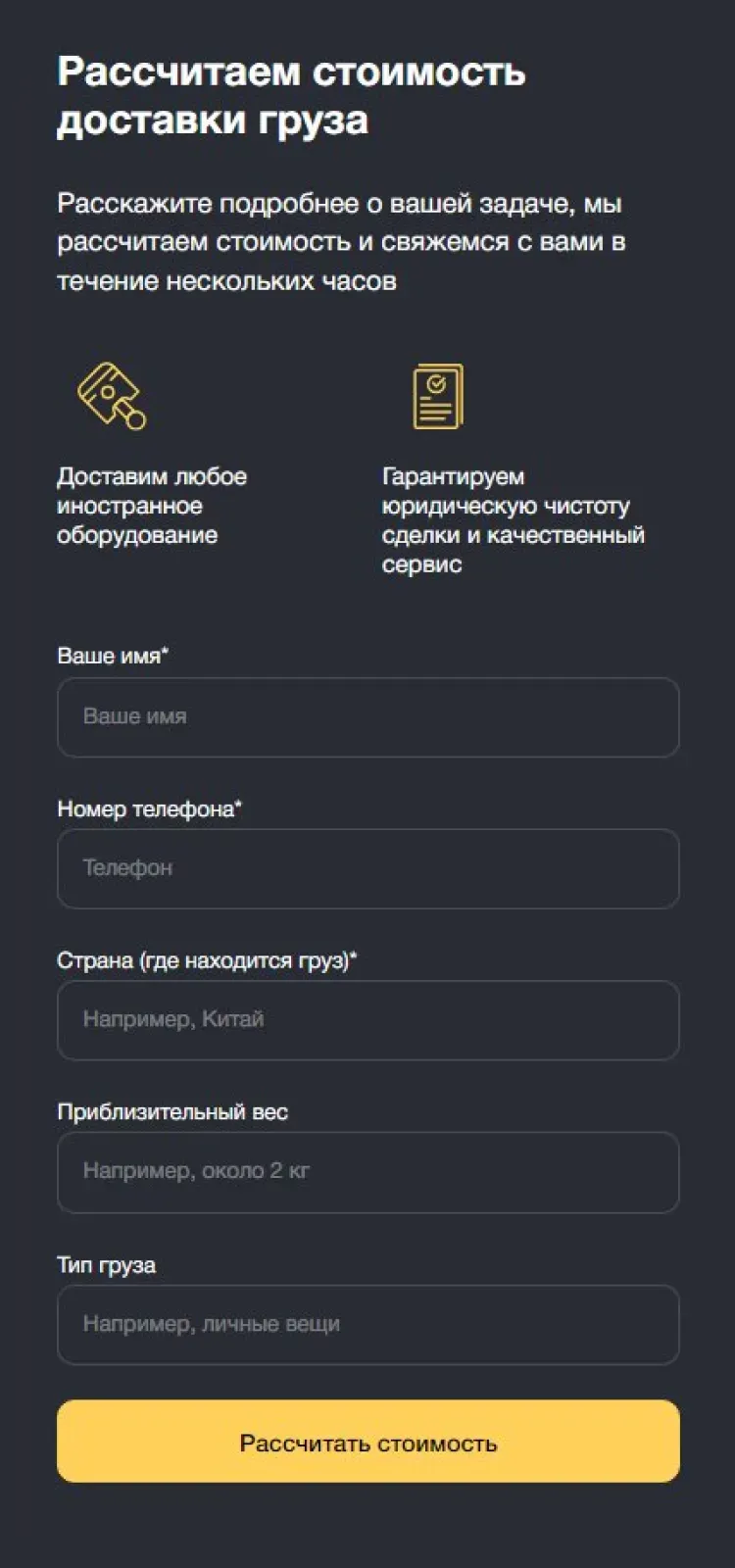 Лендинг для логистической компании
